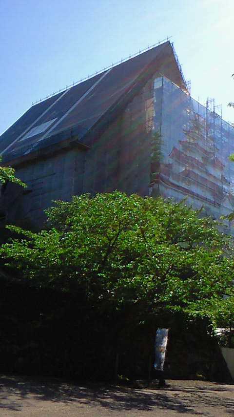 覆いが掛けられて外から見えなくなってました
