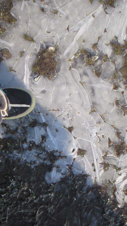吐く息は白く、水たまりが凍ってました。