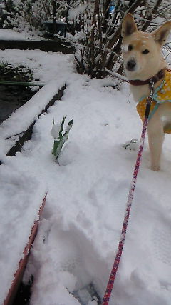 我が家のチューリップも雪まみれ