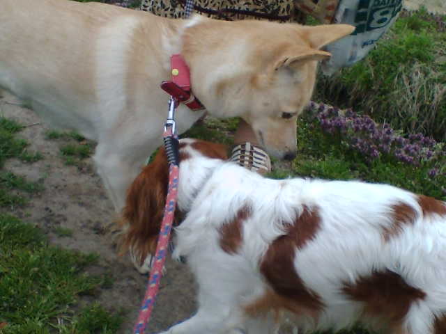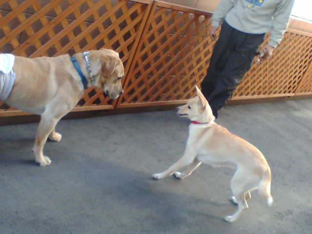 きゃー逃げるのワタシ・・リックス君は同じ3歳のラブラドールの男の子です