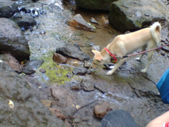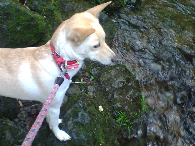 ちゃんも川に入ろうと、