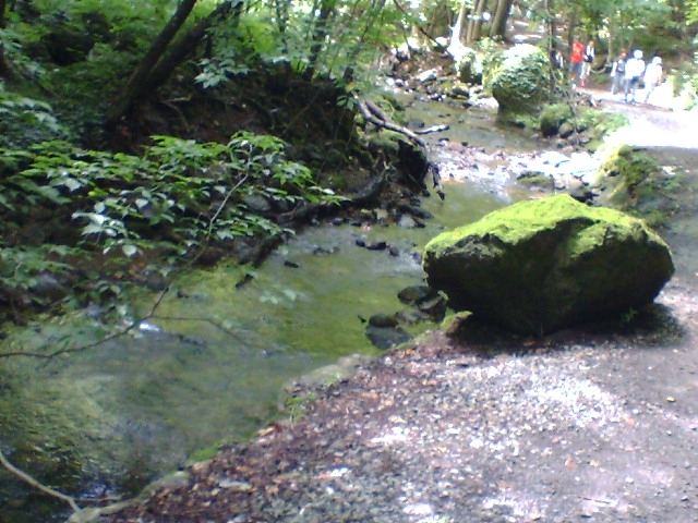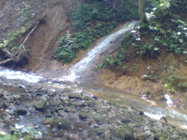 川に流れる山からの水が滝のようです