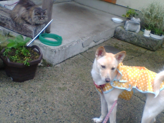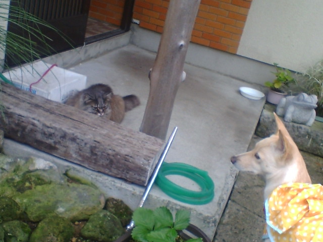 捜査官は見つけなかったようですが、背の高いあやママ捜査官は、草むらから家の中に逃亡するホシ(猫