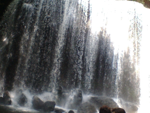 こちらが滝ですが、すごい水量ですしぶきが飛んできます