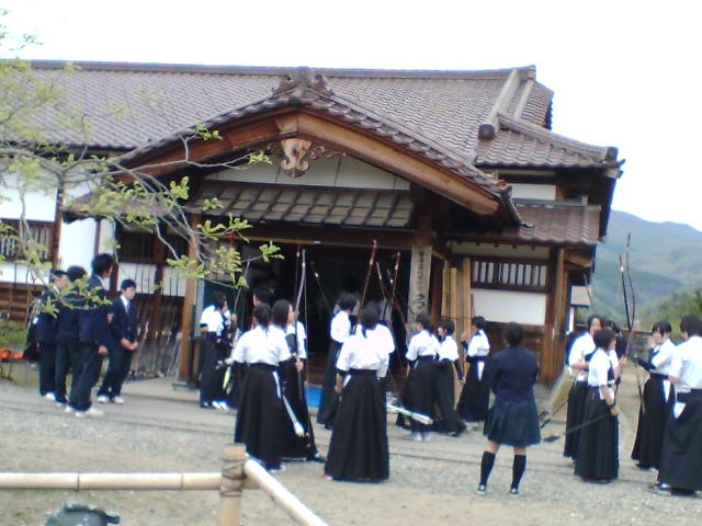 ちゃんの視線の先には?弓道場で高校総体をやっていて