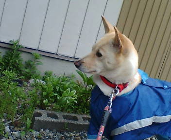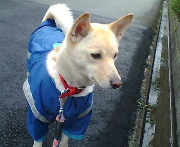 ちゃんはいつもの雨カッパです