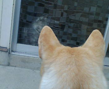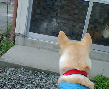 ちゃん いましたガラス戸に見えてます