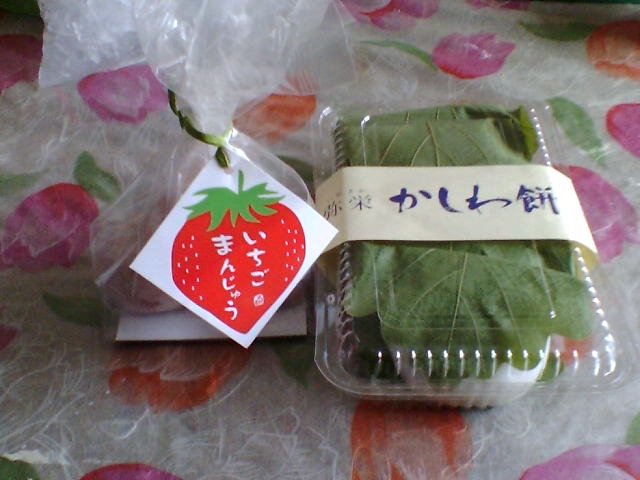 関係ないのですが、お菓子屋さんの「かしわ餅」の「のぼり」の誘惑に負け購入しました
