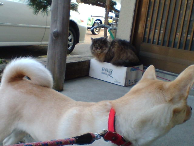 クンクン・・この匂いは・・猫ちゃん?何故か吠えました