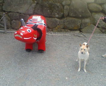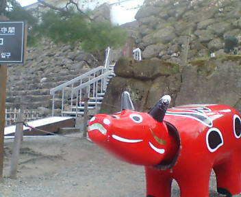 お城の入り口では、大きな「あかべこ」が