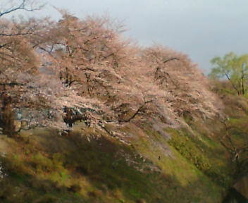 お堀の桜が 夕日を浴びて