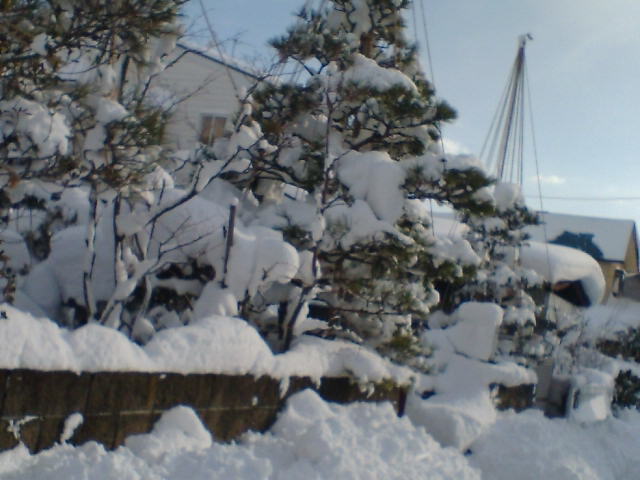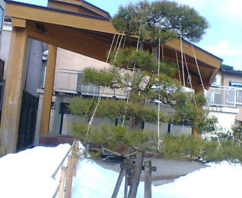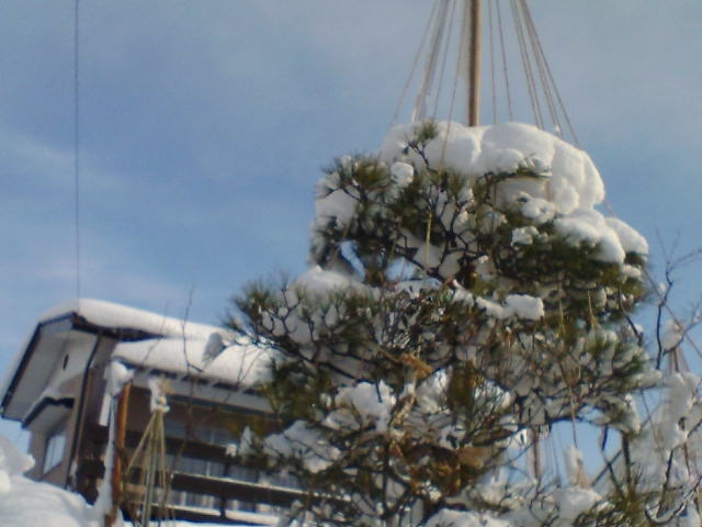 近所の松の「雪吊り」が、やっと今年の役目を果たしました。