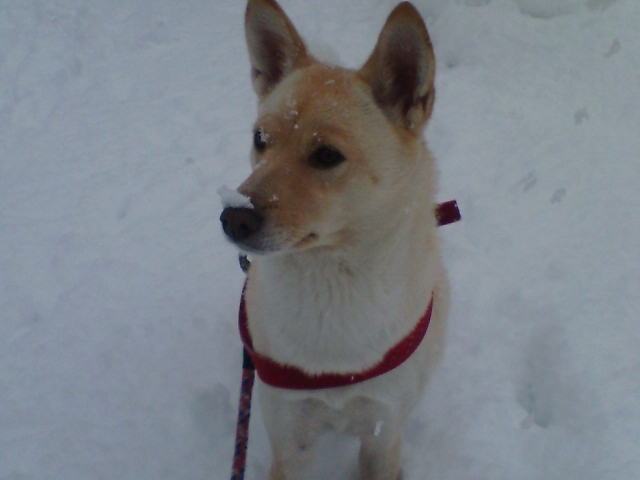 ちゃんの鼻にも雪が積もりました