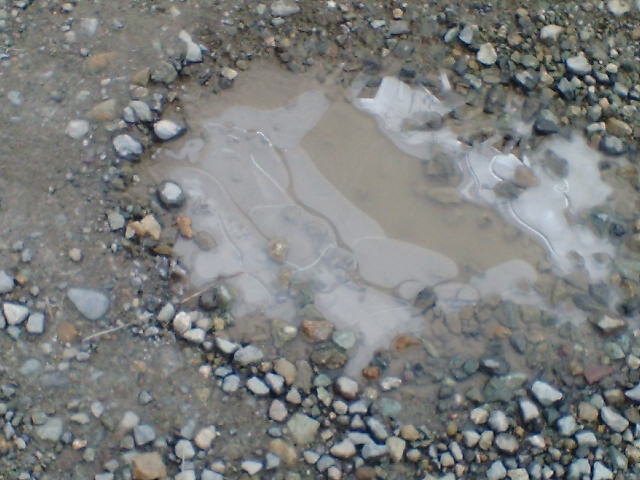 今日、水たまり凍りましたー