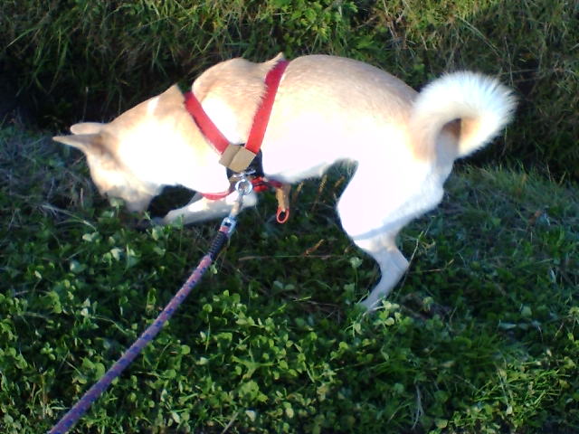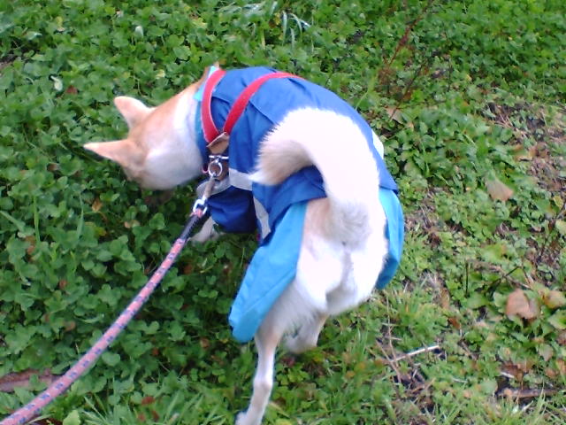 後ろから見ると、ちょっと間抜け(;^_^A 少し小さいのか、後ろ足を通すと