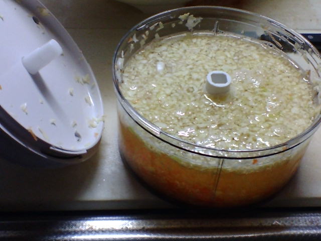 かぼちゃ(冷凍で可)キャベツ・にんじん・玉ねぎ各50gを、微塵切りし、20分煮るだけ・
