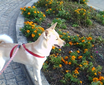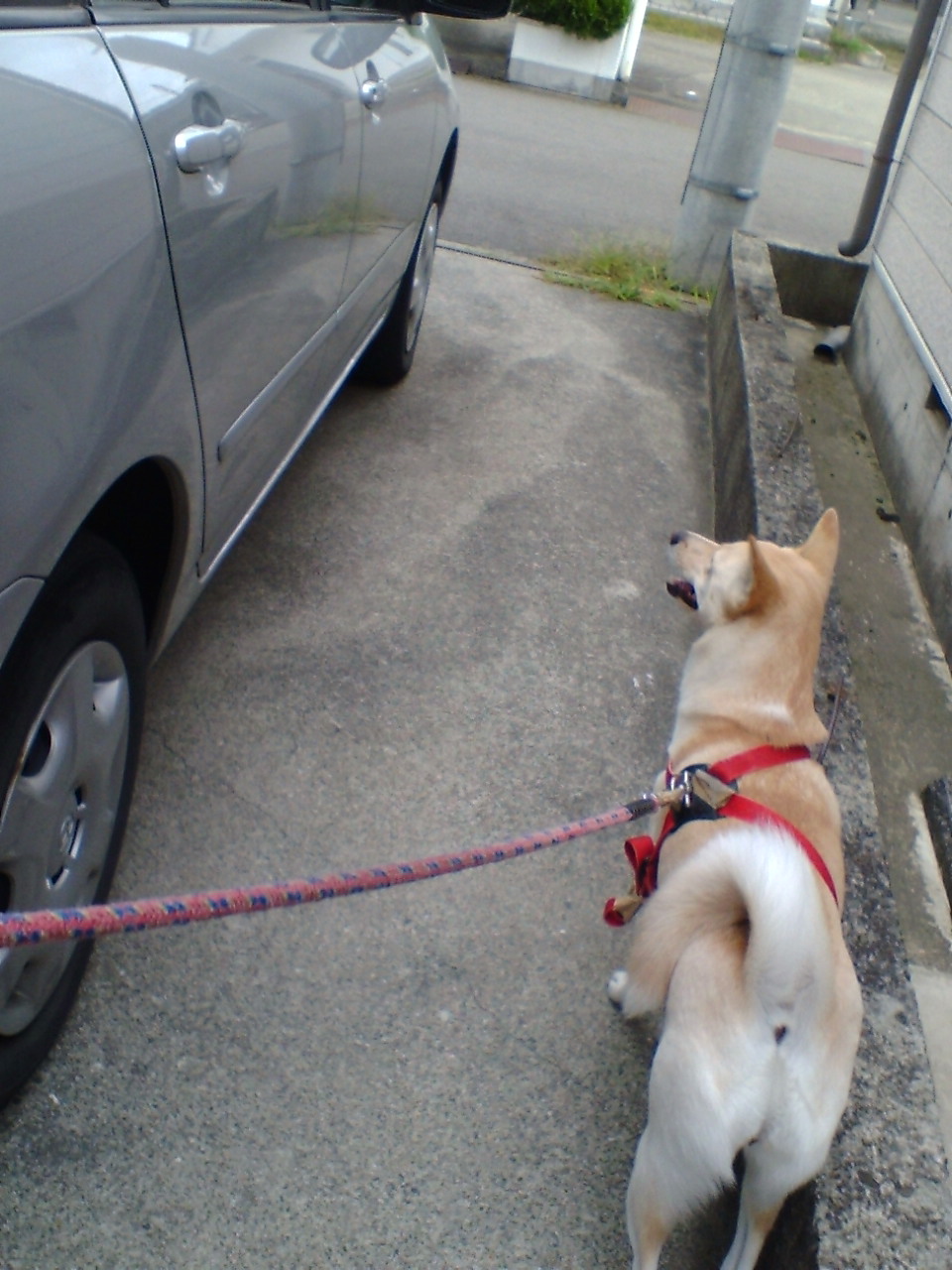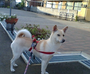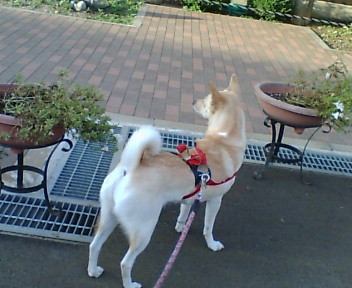 散歩に出かける時 通路の端をかけ足で通ろうとします。