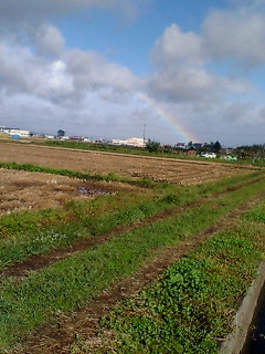 虹を見ると良い事ありそう~~~(携帯カメラじゃこれが限界?薄くしか写らなかった)