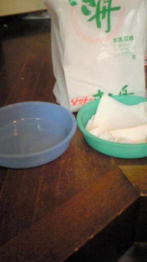 100円ショップで購入した薄いボールにチリ紙を薄くしきます