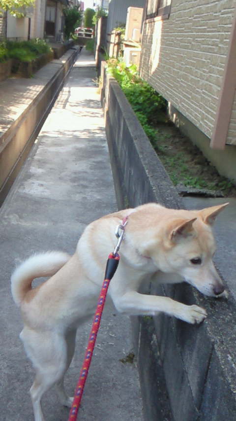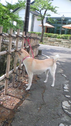 柵の下のお堀を気にしてます^^